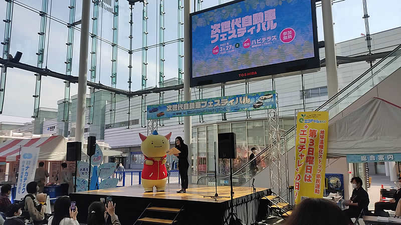 ハピテラスで行われた「次世代自動車フェスティバル」におじゃましたはぴっ!