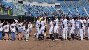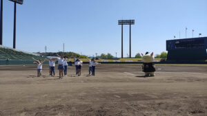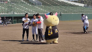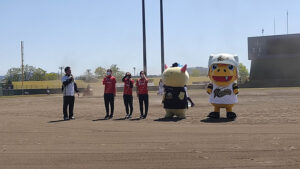 福井ワイルドラプターズの開幕戦の応援で県営球場におじゃましたはぴっ!