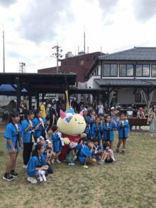 高椋ふれあいまつり会場でふくい桜マラソンのPRをさせてもらったはぴっ!
